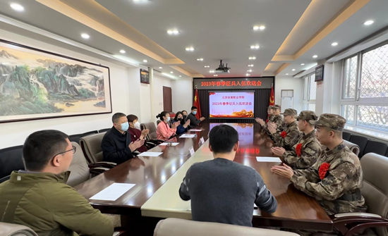 2023年3月3日下午,我院举办2023春季征兵入伍欢送会。学院院领导 ,学院学生处、教务处、竞技体育系、社会体育系等相关同志出席会议。学院征兵工作站站长肖剑晨简要介绍了我院春季征兵情况,宣读了6名预定兵名单,随后学院领导为预定兵佩戴绶带并颁发纪念品。